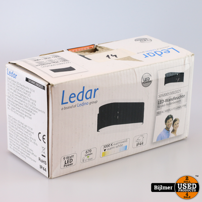 Ledar Led Wandlamp 10,5W 3000K 670Lumen IP44 | Nieuw