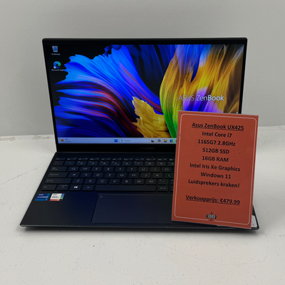 Asus ZenBook UX425_UX425EA Laptop | Luidspeakers kraken | Intel Core i7 1165G7 2.8GHz 512GB SSD 16GB RAM Intel Iris Xe Graphics Windows 11 | Met garantie