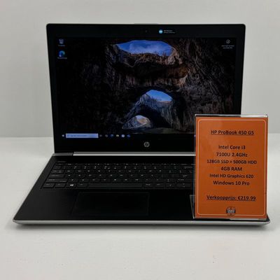 HP ProBook 450 G5 Laptop | Intel Core i3 7100U 2.4GHz 128GB SSD + 500GB HDD 4GB RAM Intel HD Graphics 620 Windows 10 Pro | Met garantie