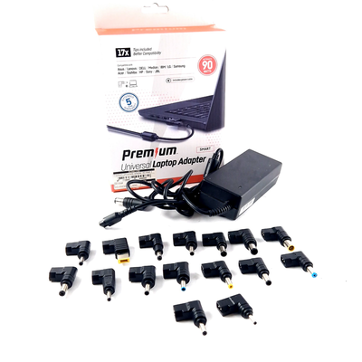 Premium Universele adapter, Laptop Adapter, Incl. 17 Opzetstukjes, 90 Watt, Zwart/Black, Incl. Doosje, Incl. Bon Met Garantie 02-04-2030 | In Nette Staat
