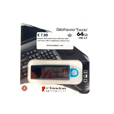 Kingston DataTraveler Exodia USB Stick, 64GB, Flash Drive, USB 3.2, Black/Zwart | Nieuw In Seal