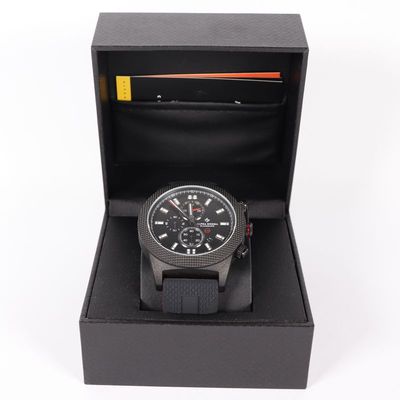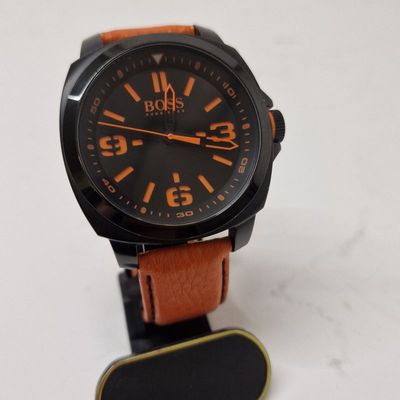 Hugo Boss Horloge 44MM Lerenband Zwart/Oranje | Nette staat