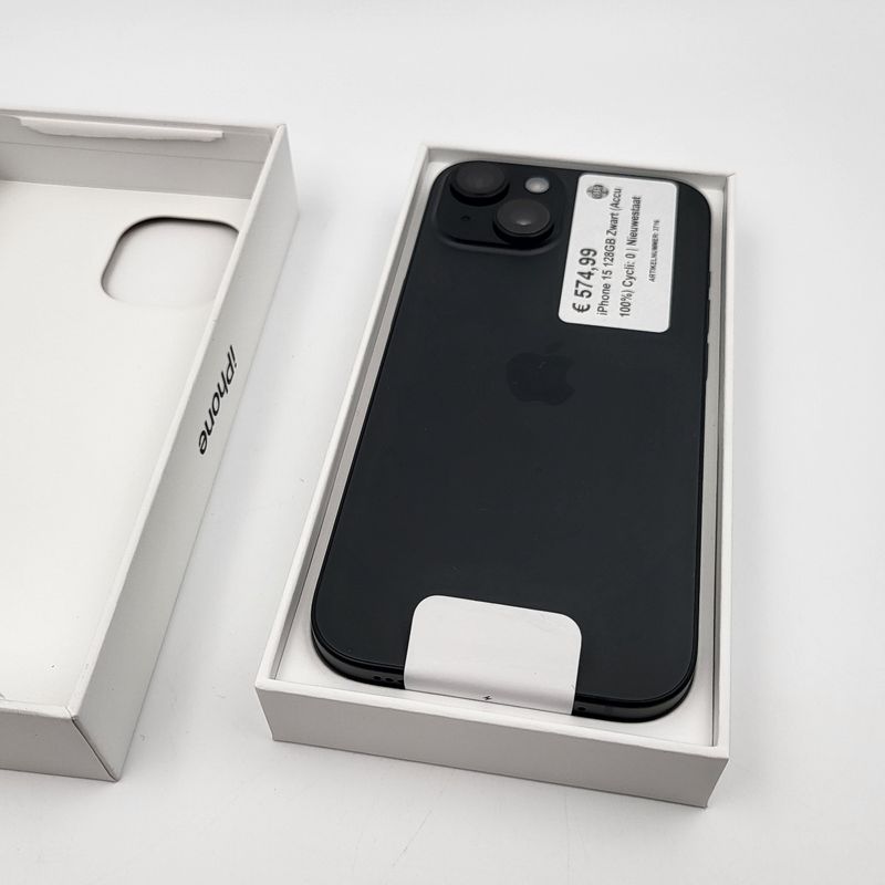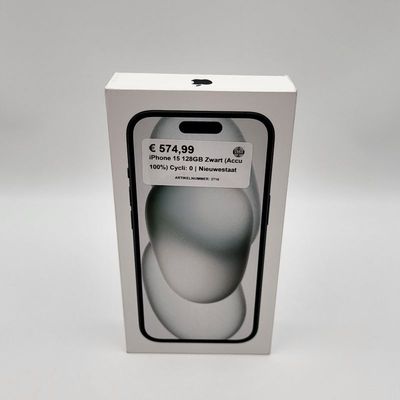 iPhone 15 128GB Zwart (Accu 100%) Cycli: 0 | Nieuwestaat