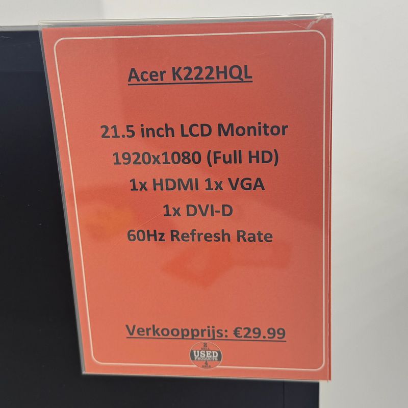 Acer K222HQL Monitor | Met garantie