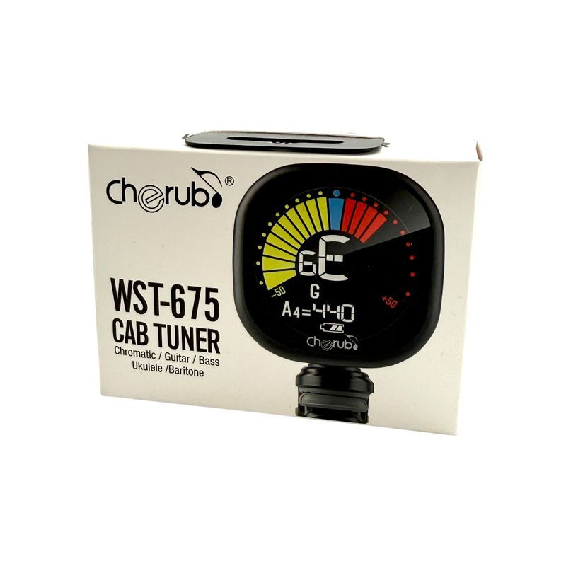 De Cherub WST-675 Cab Tuner is een compacte en nauwkeurige clip-on tuner voor gitaren en andere snaarinstrumenten. Dankzij de heldere display en snelle respons stem je eenvoudig en stil, ideaal voor zowel thuisgebruik als op het podium.