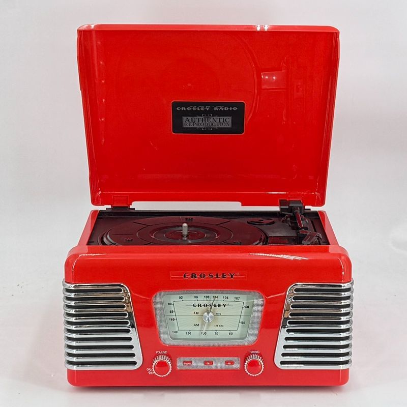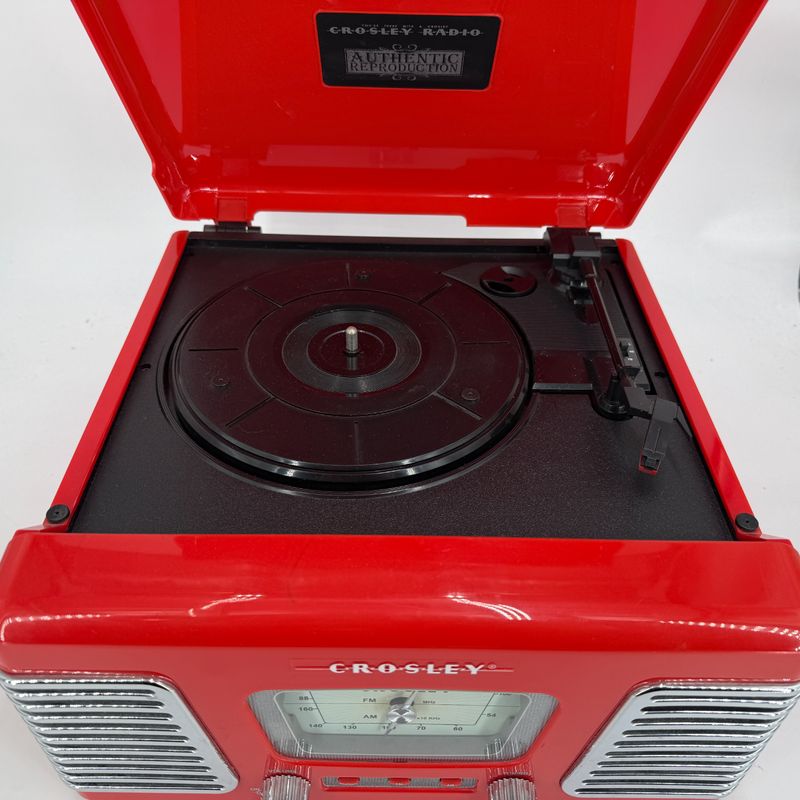Mooie retro Crosley platenspeler met ingebouwde AM/FM radio. Werkt naar behoren en ziet er nog netjes uit. De klep opent en sluit goed, de knoppen functioneren zoals het hoort en het apparaat heeft die echte klassieke uitstraling waar Crosley om bekendstaat.