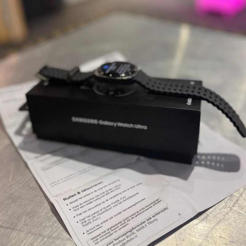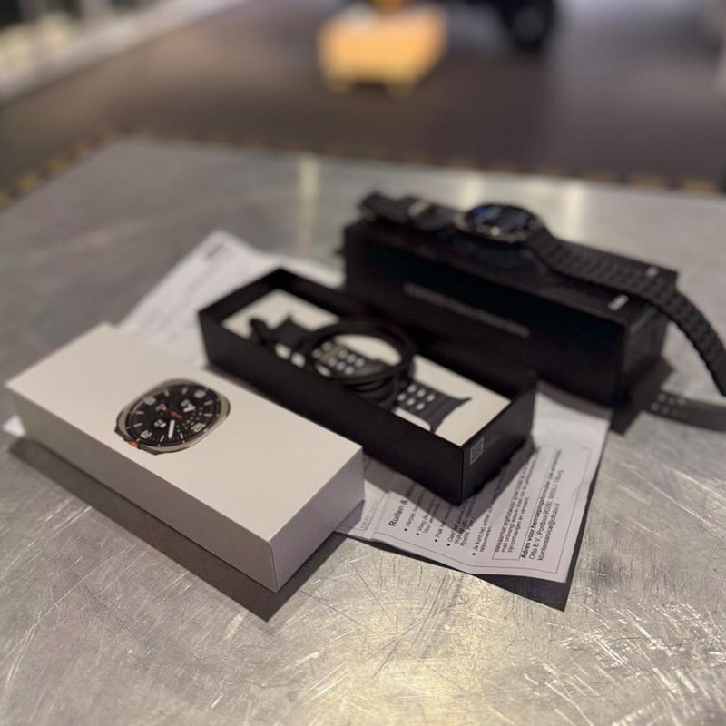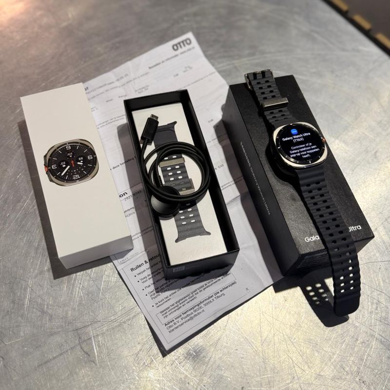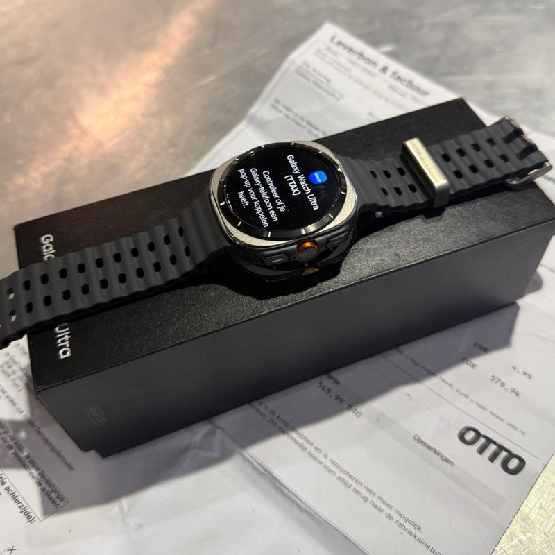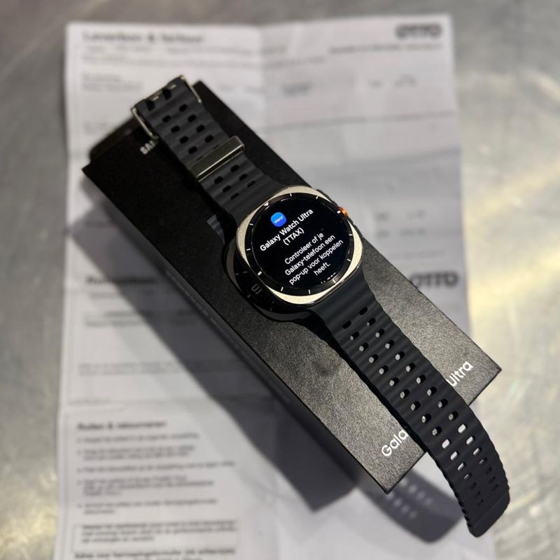 Bijna nieuwe Samsung Galaxy Watch Ultra in de stijlvolle Titanium Silver uitvoering met 47 mm kast en LTE-ondersteuning. Deze smartwatch is gekocht op 09-08-2025 en wordt geleverd met aankoopbewijs – dus nog met ruime garantie! (Nieuwprijs is €565.99)