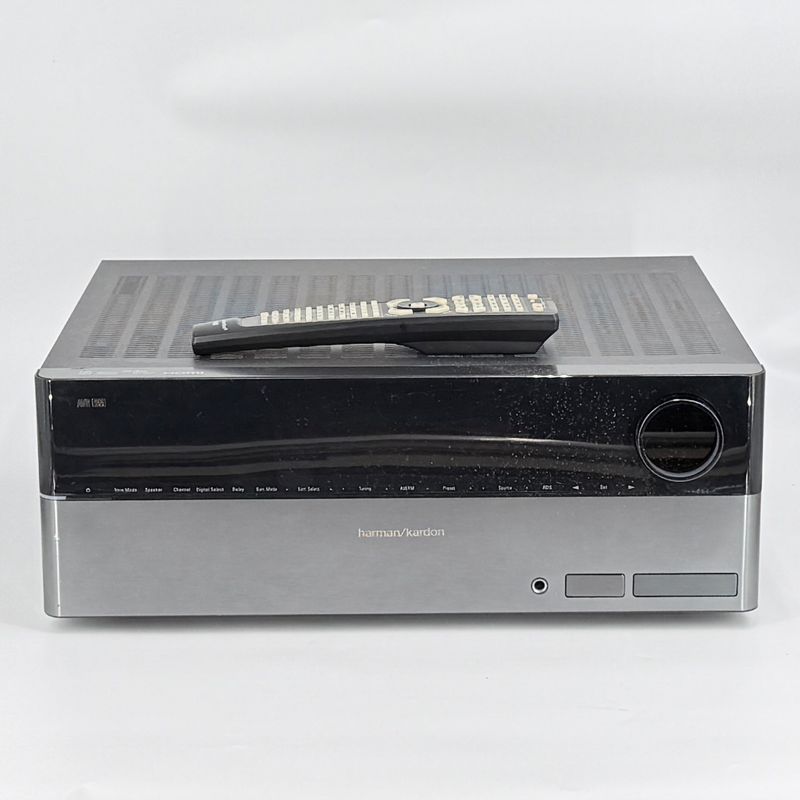 Een solide Harman Kardon receiver met een krachtig en helder geluid, perfect voor een klassieke surroundopstelling. Verkrijgbaar bij Used Products Leiden.