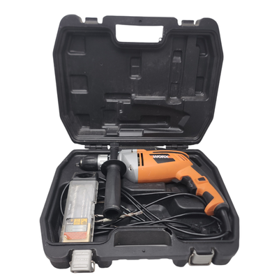 De schroefmachine is in goed werkende staat wel met gebruikerssporen rondom.