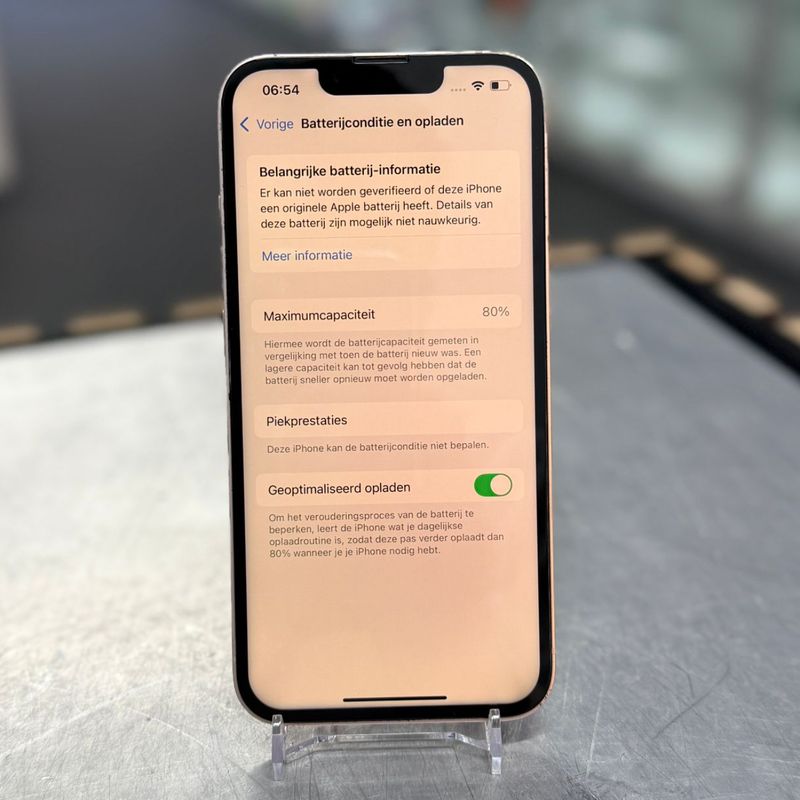 Verkrijg een stijlvolle en betrouwbare smartphone met deze iPhone 13 in de kleur roze. Het toestel verkeert in nette staat, is volledig getest en heeft een batterijconditie van 80%, klaar voor dagelijks gebruik.