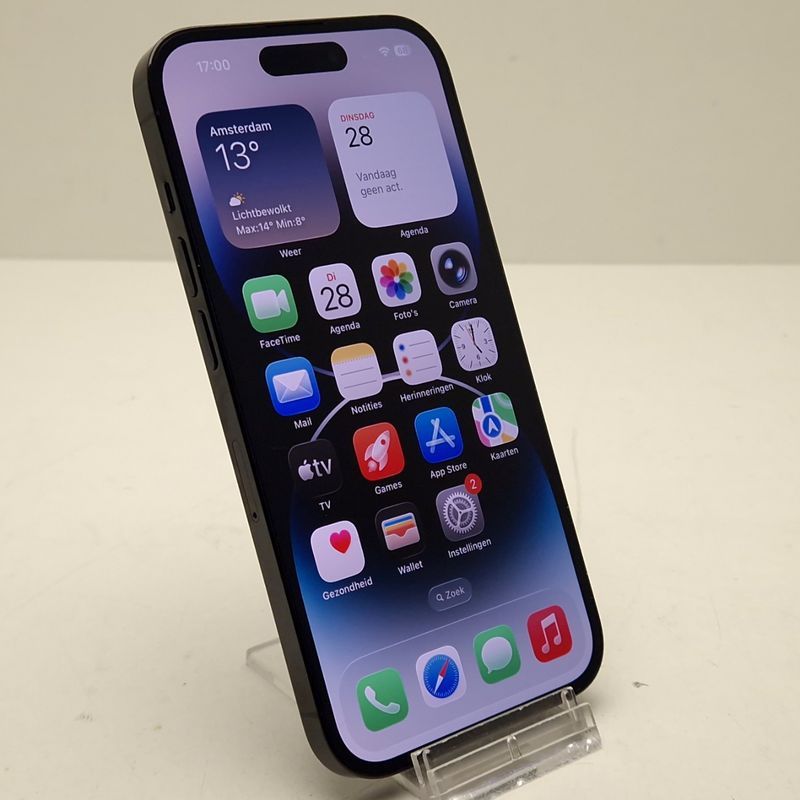 De iPhone 14 Pro 128GB in stijlvolle zwarte uitvoering combineert kracht, elegantie en topkwaliteit. Dit originele tweedehands toestel is uitvoerig getest en verkeert in nette staat — slechts een enkel mini krasje, nauwelijks zichtbaar.