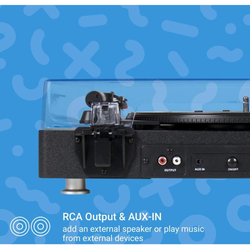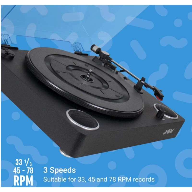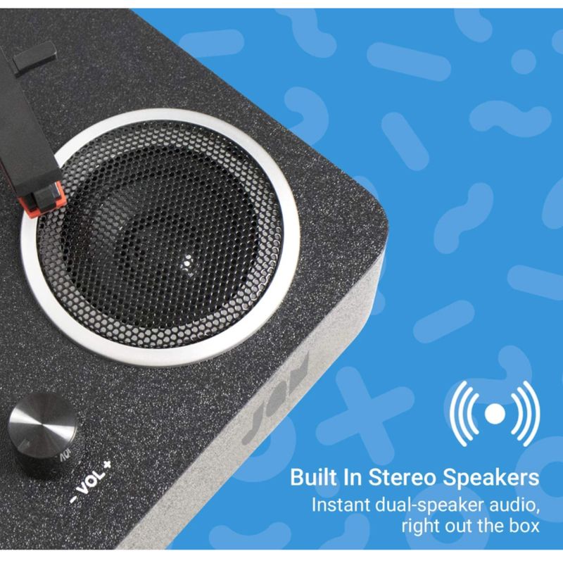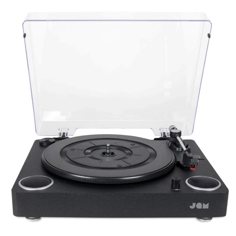 De Jam Sound All-in-One Platenspeler is een stijlvolle, moderne draaitafel met ingebouwde speakers en Bluetooth-connectiviteit. Hiermee kun je niet alleen je favoriete platen direct afspelen, maar ook muziek streamen vanaf je smartphone of vinyl draadloos afspelen via Bluetooth-speakers. Dankzij het compacte ontwerp en de ingebouwde speakers is deze platenspeler direct klaar voor gebruik — zonder extra apparatuur.