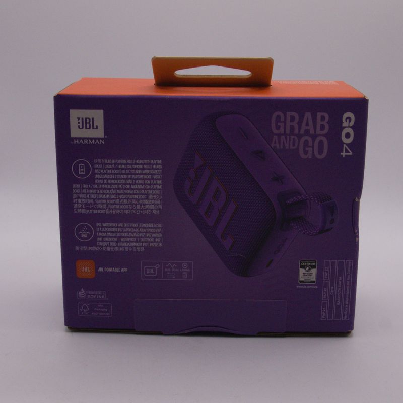 JBL Go 4 Bluetooth‑speaker nieuw in seal in stijlvolle paarse kleur! Compacte draagbare speaker met helder JBL Pro‑Sound, water‑ en stofbestendig (IP67) en tot ±7 uur speeltijd — perfect voor onderweg, thuis of buiten. Deze S‑grade nieuwstaat komt direct uit de verpakking en is gloednieuw.