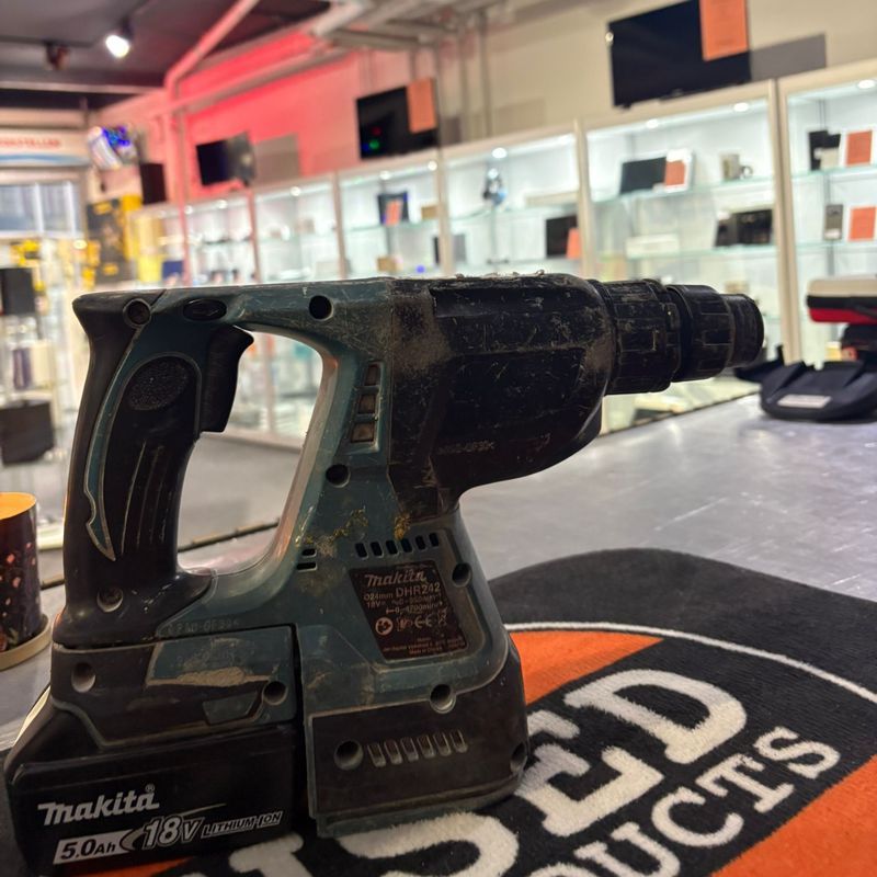 De Makita DHR242 is een krachtige en veelzijdige 18V SDS-Plus combihamer, geschikt voor boren, klopboren en licht breekwerk. Dankzij de koolborstelloze motor, lage trillingen en efficiënte slagkracht is dit model ideaal voor zowel professionals als veeleisende doe-het-zelvers. Dit exemplaar verkeert in gebruikte maar nette staat en is volledig getest. Wordt geleverd zonder stofzuiger, maar mét krachtige 5.0Ah accu.