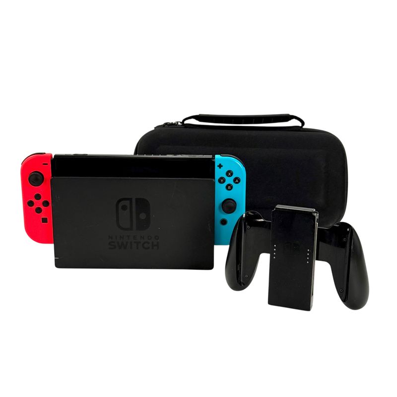 Nintendo Switch Neon Blue & Red (upgrade-model) | GEBRUIKT | incl. Joy-Cons + Grip, Dock, Case en lader, EXCL. STRAPS