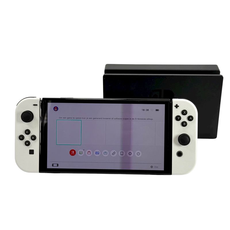 De Nintendo Switch OLED biedt een verbeterde spelervaring met een prachtig 7-inch OLED-scherm dat zorgt voor levendige kleuren en een hoog contrast. Of je nu thuis speelt op de tv of onderweg in handheldmodus, de Switch OLED levert vloeiende prestaties en helder beeld. Deze witte uitvoering wordt geleverd met originele Joy-Cons, dock en adapter.