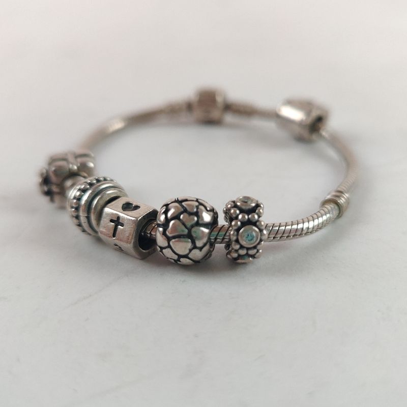 Pandora armband + 6 bedels 16cm