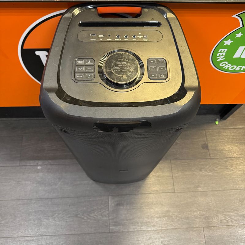 Creëer jouw feestje met de Salora PartySpeaker XXL1. Deze Bluetooth party speaker beschikt over 2x 12’’ speakers met een vermogen van 1200 watt. Met de 8000 mah accu is deze speaker ook draadloos te gebruiken en heb je ruim 5 uur luister plezier. Je kan gebruik maken van 2 microfoon ingangen en