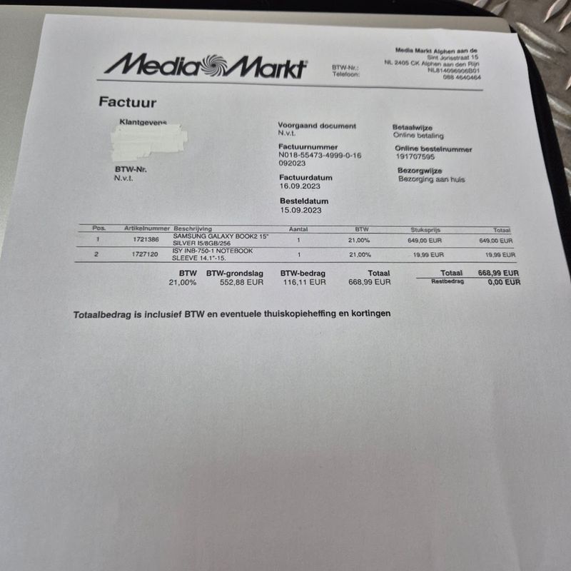 Met hoes en bon Mediamarkt 15-09-2023 twv € 668.99