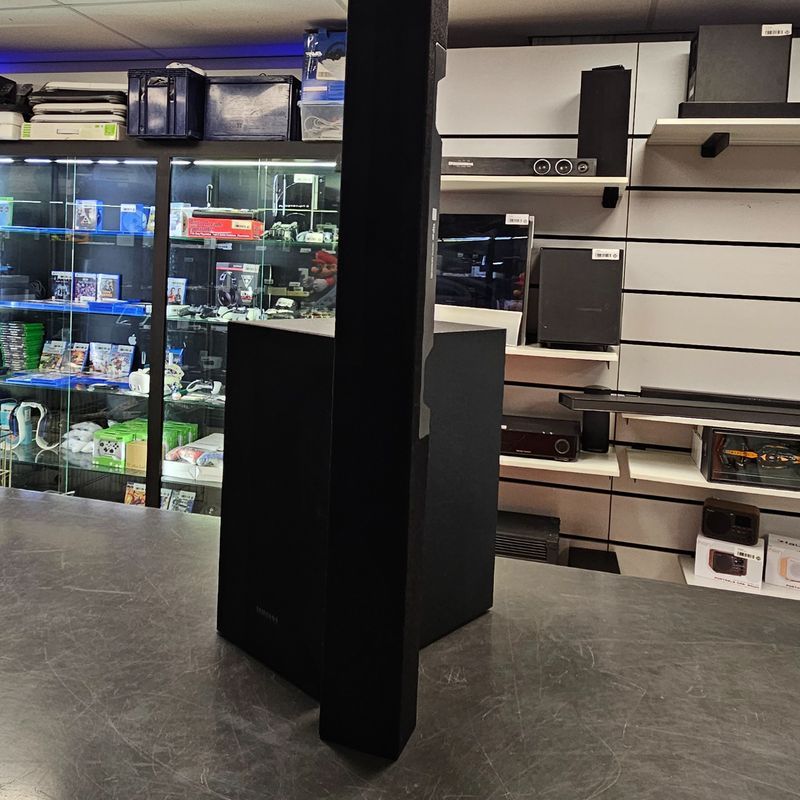 met stroomkabel en subwoofer