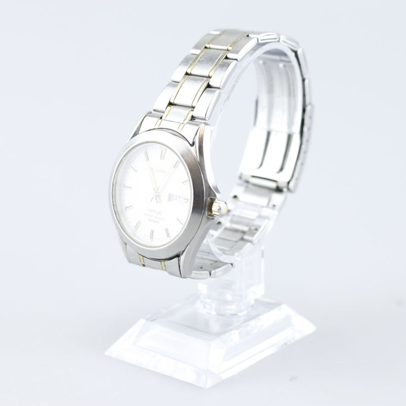Seiko V743 9020 Witte Plaat Vintage Horloge Heren