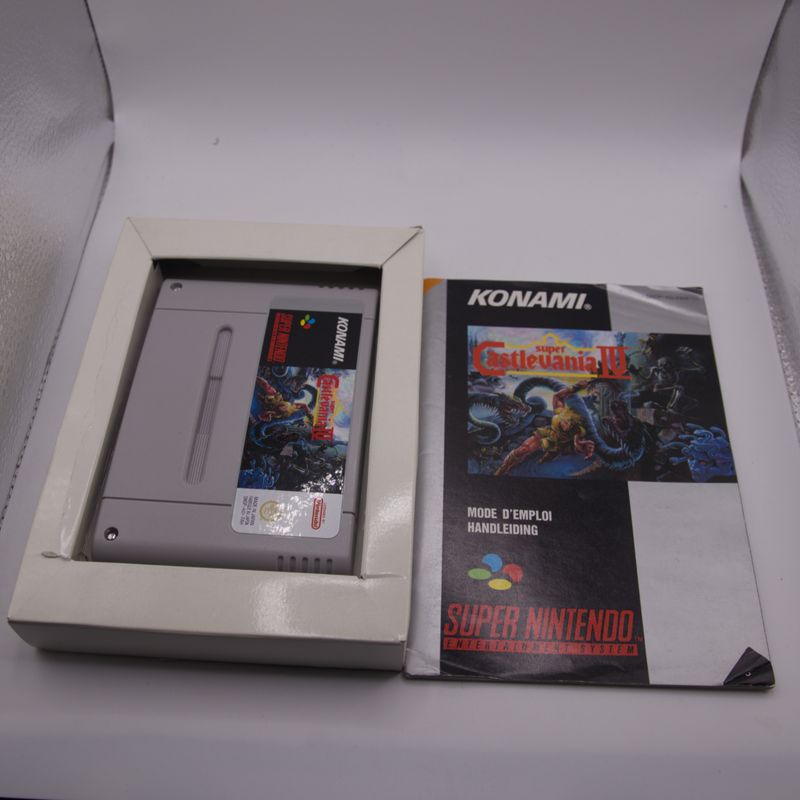 Beleef opnieuw het epische gothic avontuur met Super Castlevania IV voor de Super Nintendo (PAL/FAH‑uitgave), compleet in doos + manual + cartridge, in uitstekende B‑grade staat!